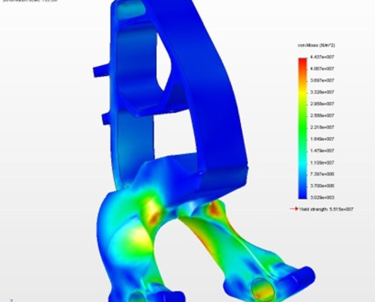 Taking into consideration the operating environment for this aluminum casting, we generated a project specific digital stress test using FEA (Finite Element Analysis). The unique requirements of this product were weight restrictions and a final shape driven by dynamic clearance requirements. To minimize stress points, material was added, and profiles adjusted within the space available. These tests also had to accommodate for temperature and fatigue over time. The resulting product entered the market quicker and with lower development costs.